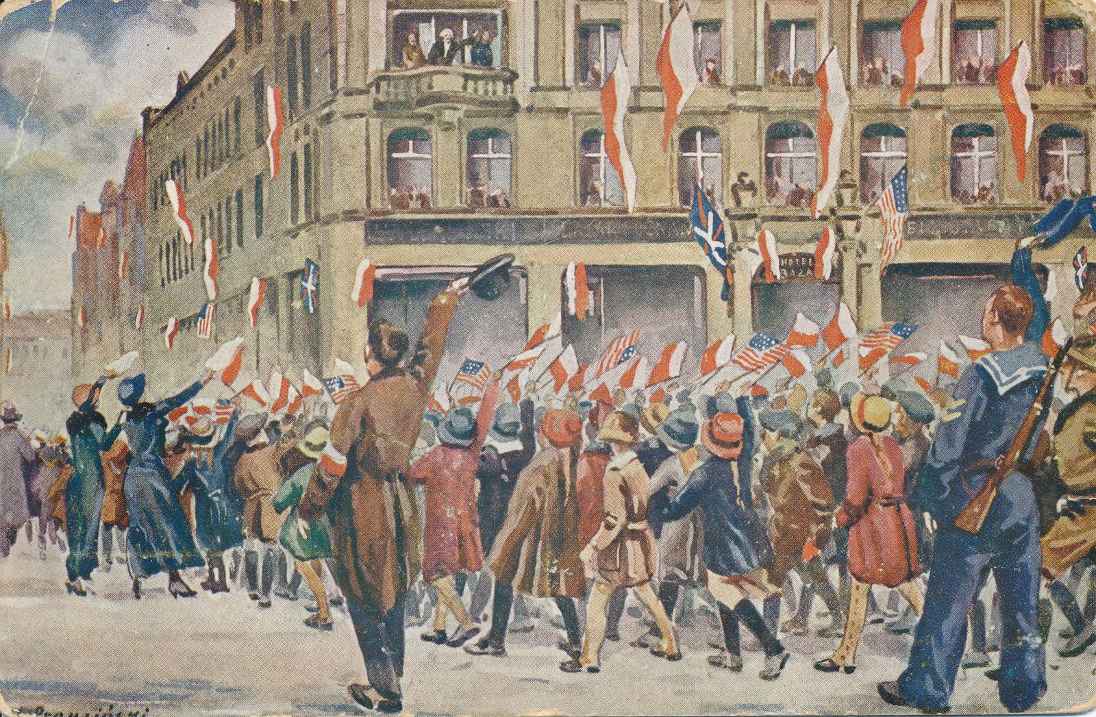 zakwaterowano w hotelu Bazar. W hotelowym oknie pianista przemówił do